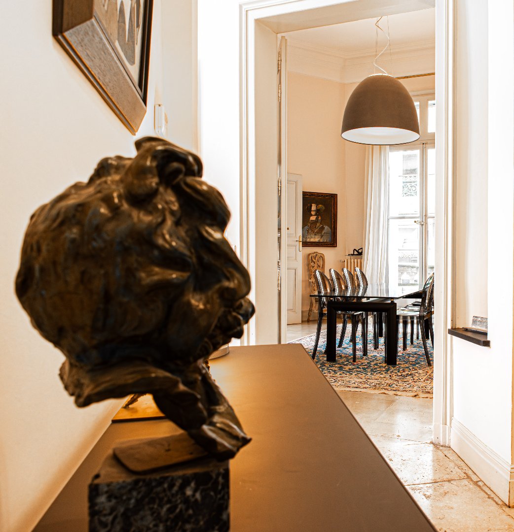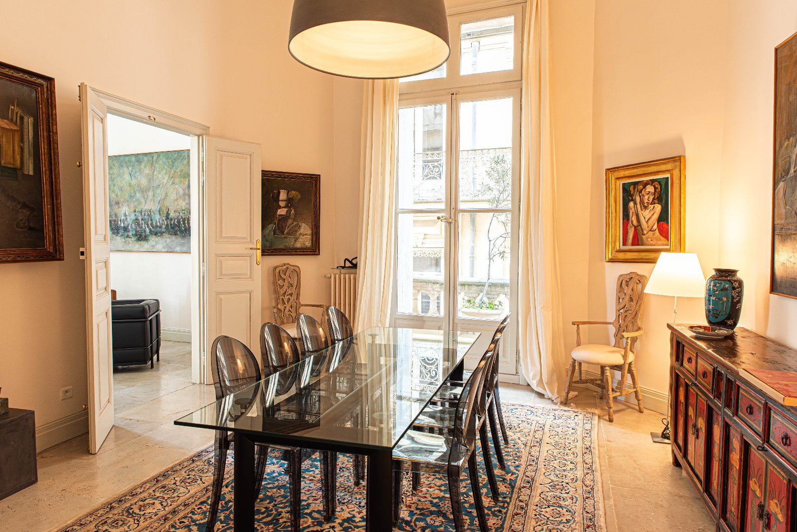 Au coeur de la rue Foch, dans un très bel immeuble bourgeois, superbe appartement de réception de plus de 200 m² habitables organisé autour de très belles pièces de réception. Dès l’entrée, vous serez séduit par l’élégance des lieux, la décoration soignée, les prestations de très belle facture et le niveau de finition absolument remarquable. L’appartement dispose de 4 belles pièces de réception agencées en étoile autour du hall d’entrée. De beaux volumes, une belle hauteur sous plafond, des bars au sol, des cheminées en marbre, l’ensemble est absolument splendide. La cuisine, dans la continuité, est contemporaine et entièrement équipée. Elle dispose de son arrière cuisine et de sa lingerie, l’ensemble est facile et très fonctionnel. Côté nuit, une superbe suite parentale avec une grande salle de bain et son balcon donnant sur la cour intèrieure de l’immeuble. A l’étage, 2 chambres supplémentaires joliment aménagées et une salle d’eau. L’appartement est parfait pour vivre pleinement cette partie très recherchée de la ville de Montpellier. Le niveau de finition et de prestation est rare ! L’appartement est vendu avec une belle cave en parfait état et la possibilité de garer son véhicule au pied de l’immeuble, un véritable luxe en centre-ville ! Dossier sur demande