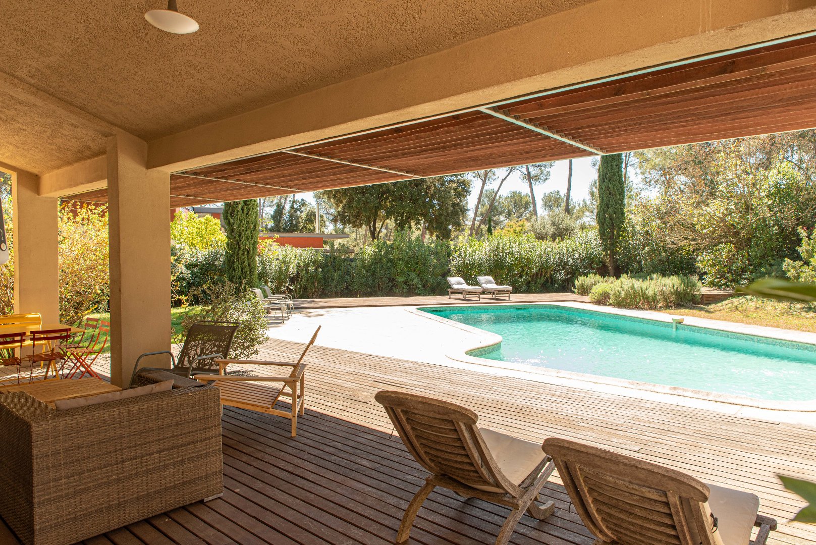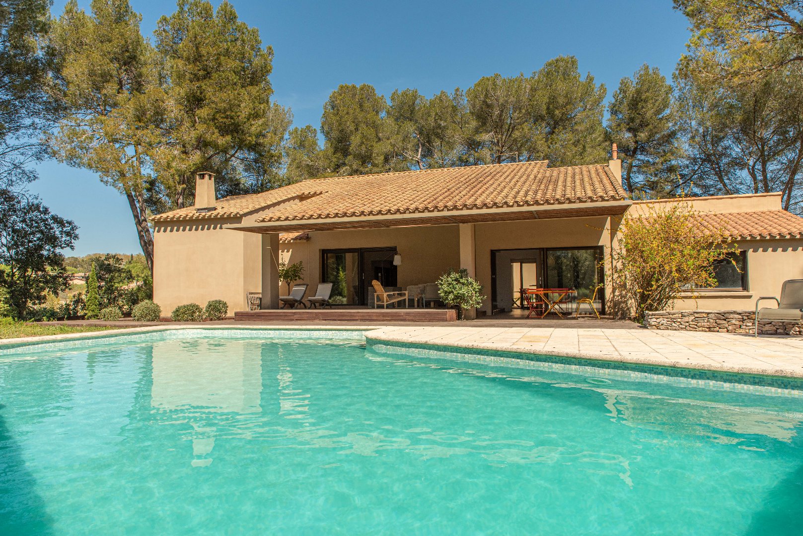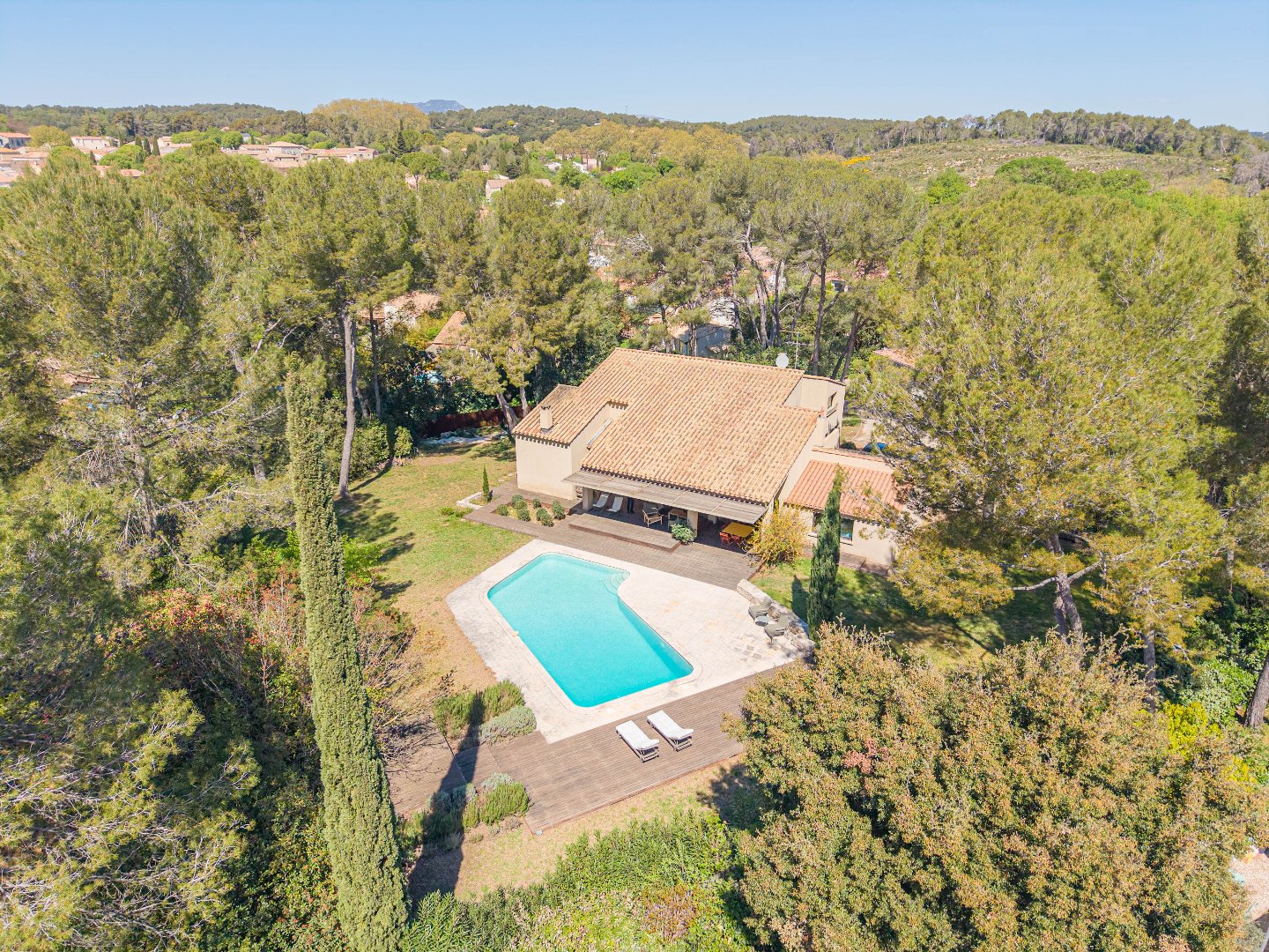 Une exclusivité DEFLANDRE Résidences Propriétés. Nichée dans un écrin de verdure, à 2 pas du centre du village, cette grande villa familiale d’environ 270 m² habitables se déploie sur un magnifique terrain boisé de 3000 m² de terrain, à l’abri des pins parasols. Sobre, chaleureuse audacieuse à la fois, cette villa propose 6 chambres dont une suite parentale de plain pied. un bureau, une salle de sport et de nombreuses terrasses qui libèrent les perspectives sur la nature environnante. Un cadre idyllique à 20 minutes de Montpellier à découvrir !