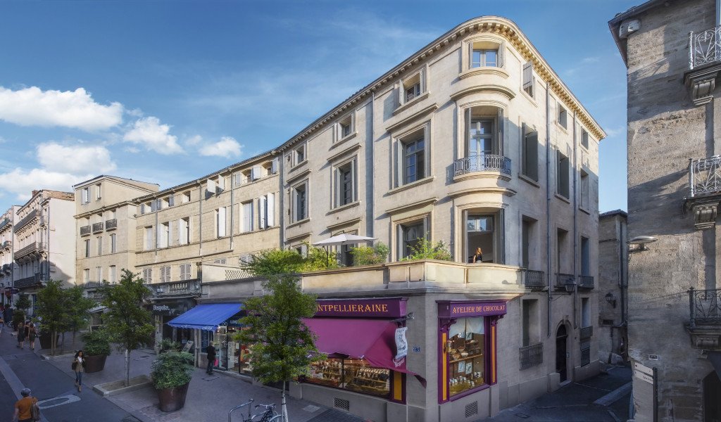 C’est au coeur même de l’Ecusson, chargé d’histoire, que ce prestigieux édifice prend place. Ce remarquable hôtel particulier de la fin du XVIIIe siècle est le résultat du remembrement de deux demeures plus anciennes, ayant appartenues à des professionnels du négoce, de la médecine et de la finance. Son escalier en pierre à vis du XVIIe siècle témoigne de cette époque fastueuse. Ce superbe immeuble offre trois façades sur rues et une organisation intérieure sur cour sur plus de trois niveaux. En 1825, sous le mandat du maire Jules Pagézy, l’immeuble est redressé : une avancée de commerce est adjointe à l’immeuble. Cette bâtisse a ainsi connu plusieurs vies. Ces rencontres l’ont marquée dans la pierre et la restauration de prestige menée permettra de faire revivre chacune d’elles, de la distribution des pièces aux façades sur rue, en passant par les décors intérieurs nobles et discrets. Réhabilitation de prestige encadrée par les Architectes des Bâtiments de France : bars au sol, cheminées en marbre, hauteurs sous plafond entre 3m50 et 3m80, terrasses ou balcons sur certains appartements.