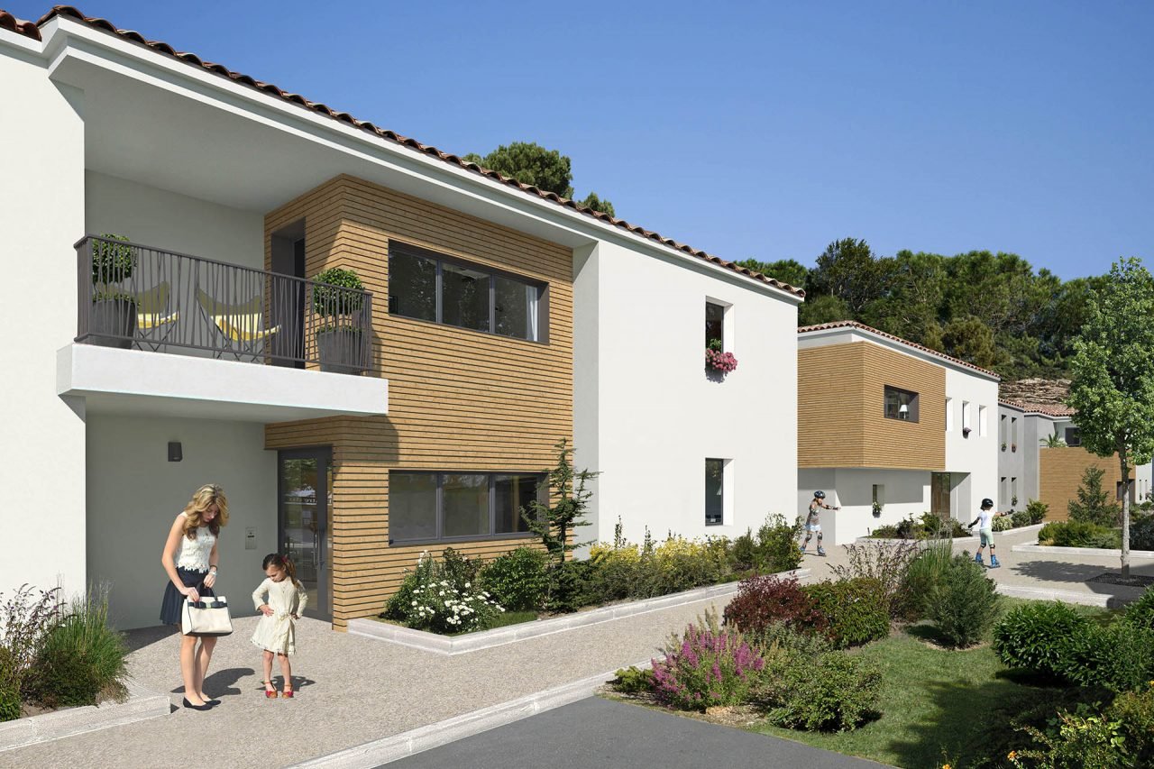 À 15 km du bord de mer, le Clos des Oliviers est un quartier vert et convoité de Castelnau-le-Lez, desservi par la ligne 2 du tramway et en liaison rapide avec les pôles d’activités de l’Est de Montpellier. Par ses choix de matériaux et de couleurs, le Clos des Oliviers présente une architecture à l’équilibre entre inspiration contemporaine et tradition de pays. Ce programme immobilier neuf privilégie la dimension humaine : ses quatre petites unités résidentielles, élevées sur un unique étage, répartissent 32 appartements. Largement ouverts sur des prolongements extérieurs, tous bénéficient d’une luminosité optimale, apprivoisée par les persiennes orientables des loggias et les auvents des terrasses. Proposant également des jardins privés en rez-de-chaussée, cette résidence neuve y ajoute l’agrément d’une placette paysagère et d’un beau jardin commun. Entièrement close sur son périmètre et disposant d’accès sécurisés, elle est dotée de places de stationnement aériennes et d’un parking en sous-sol.