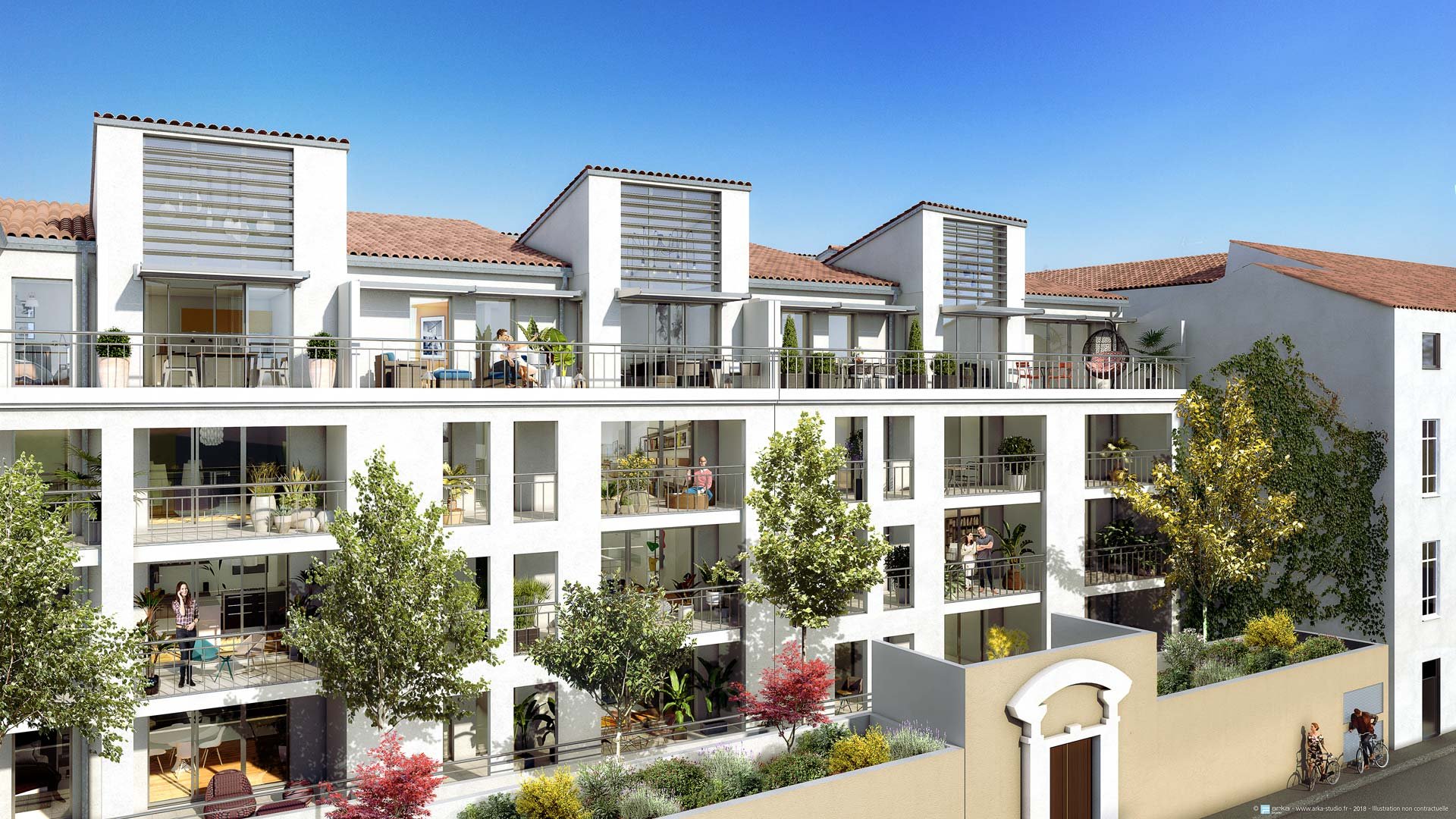 3eme ville d’Occitanie avec 154 000 habitants, Nîmes bénéficie d’une situation exceptionnelle dans le triangle Montpellier-Avignon-Marseille, à la périphérie de l’autoroute La Languedocienne, à deux heures et demie de Paris en TGV, et possédant un aéroport international. Active et dynamique, elle a su séduire plus de 16 000 entreprises dont de grands noms de l’industrie dans des domaines aussi divers que le tourisme, l’agro-alimentaire (Perrier, Royal Canin, Saint-Mamet), le nucléaire (AREVA Marcoule) et dispose de grands organismes de recherche (CNRS, INSERM, IRSN,) et 6 pôles de compétitivité. 10 000 étudiants participent à ce dynamisme au sein de son université Unîmes, son école d’ingénieur, sa Faculté de médecine et son École Supérieure des Beaux-Arts. La résidence, idéalement située en plein coeur du centre historique, à 120m de la Maison Carrée, s’élève sur un beau jardin suspendu de contemplation. Ses lignes architecturales contemporaines déploient de nombreuses terrasses ensoleillées jusqu’à 27 m2. Le dernier étage réserve des appartements d’exception avec séjours avec hauteurs sous-plafond de plus de 4,50 m et baies vitrées « cathédrale ». Les surfaces du studio au 4 pièces se prolongent toutes d’un espace extérieur, balcon, terrasse abritée et à ciel ouvert, ou jardin privatif : un agrément appréciable au cur de la ville. Prestations haut de gamme avec possibilité de personnalisation.