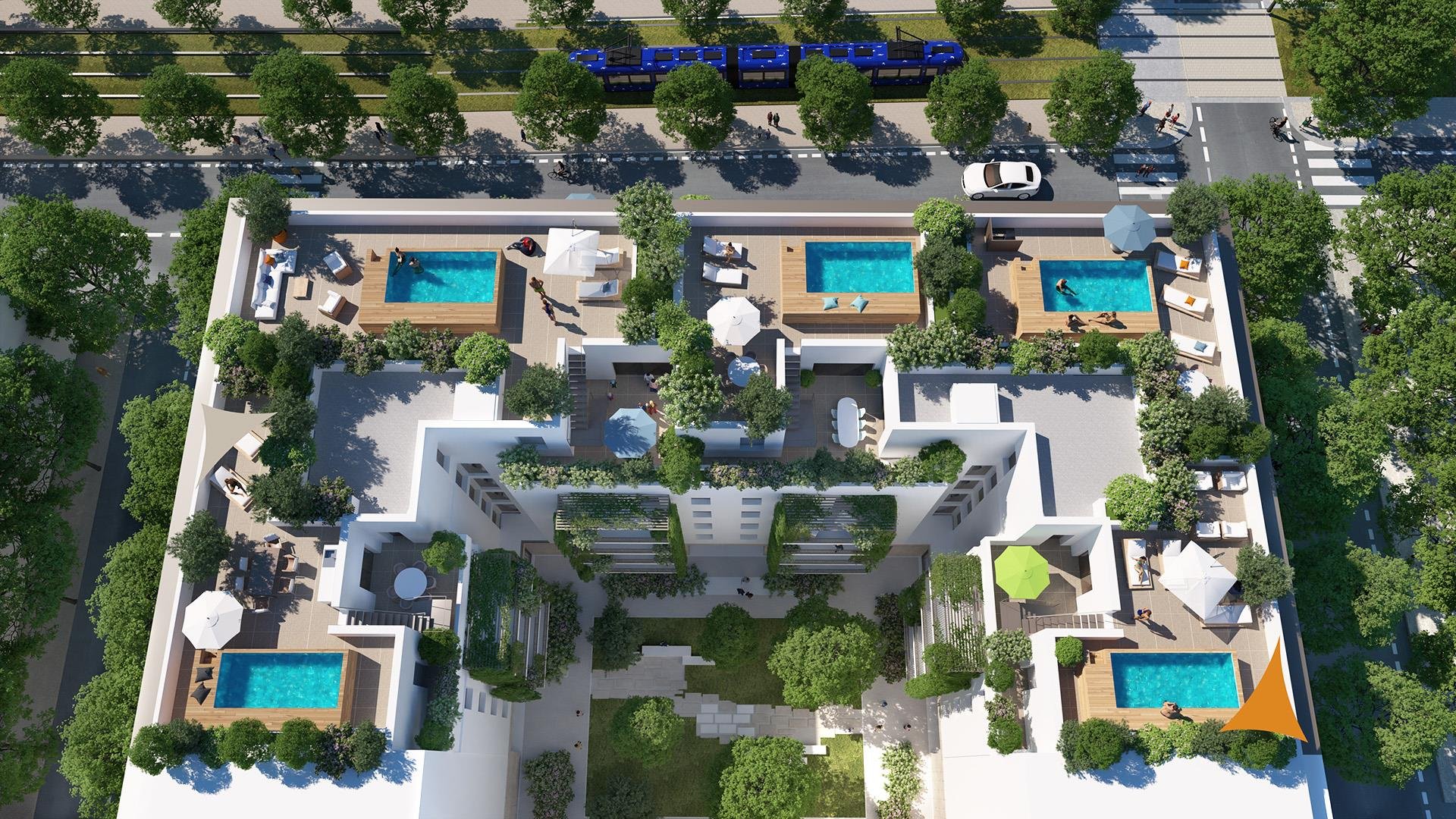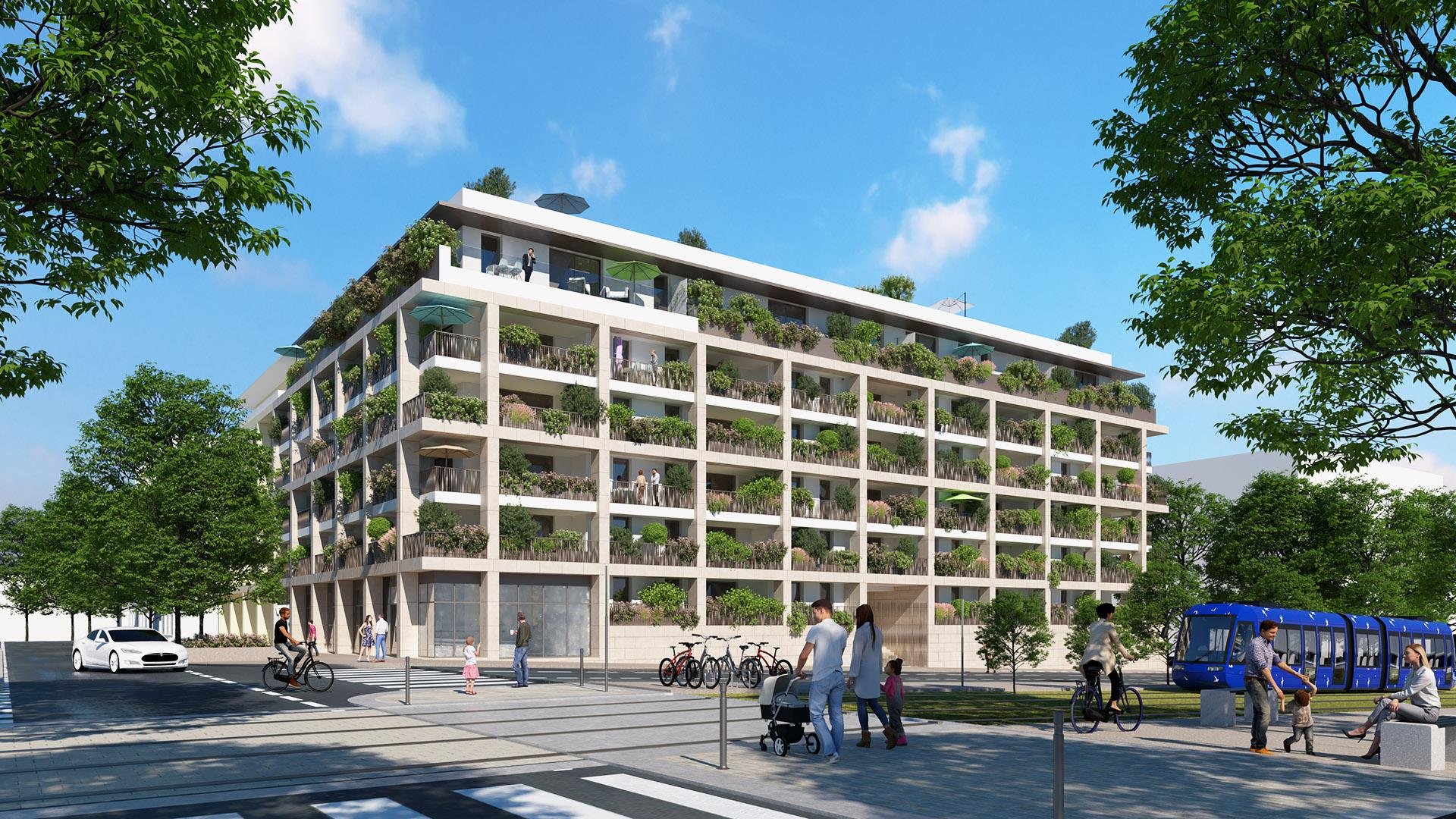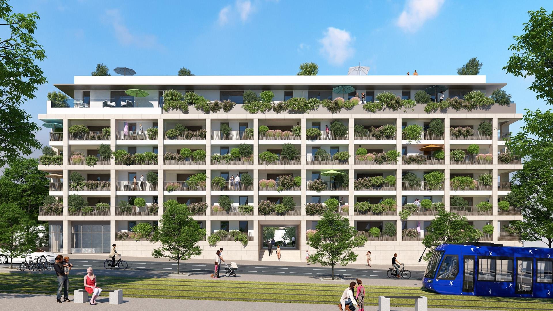 Dans un lieu de vie chargé d’histoire, sur le site de l’ancienne école d’Application de l’Infanterie (EAI), ainsi qu’aux abords du parc Montcalm, demeure une résidence élégante et verdoyante. Elle propose à ses futurs résidents des prestations de standing avec une harmonie entre les matières, les couleurs et les végétaux. Disposant de nuances douces et délicates, des pierres naturelles aux teintes chaudes viendront recouvrir sa façade. Cette résidence présente 56 appartements, allant du studio au cinq pièces, répartis sur un bâtiment de six étages. Chacun des logements bénéficie d’une généreuse terrasse ombragée. En ce qui concerne les derniers niveaux, la résidence propose des appartements d’exceptions, chacun disposant d’un étage avec des solariums végétalisés dotés de piscine ! La résidence prévoit, en rez-de-chaussée, des commerces pour une proximité assurée. La ligne 5 du tramway passera au pied de la résidence afin de rejoindre le centre historique de Montpellier trois arrêts plus loin … Enfin la résidence dispose de parkings sécurisés en sous-sols sur deux étages avec ascenseur.