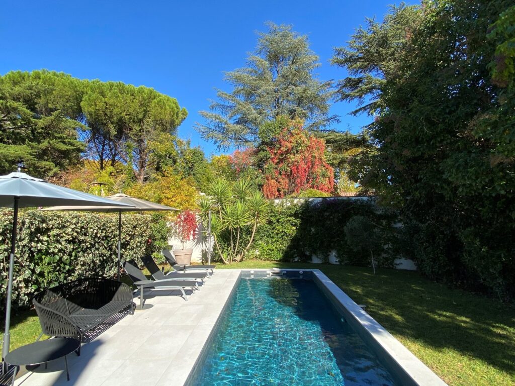 Dans ce quartier recherché des Arceaux, à proximité immédiate des commerces et des écoles, celle belle maison bourgeoise des années 30 a été entièrement rénovée avec de très beaux matériaux dans un esprit contemporain. La pièce de vie est spacieuse, avec un joli parquet massif au sol, une cuisine design neuve entièrement équipée, de beaux volumes et une superbe vue dégagée sur le jardin et la piscine. A l’étage, 3 belles chambres avec salle de bain et salle d’eau ainsi qu’une superbe suite parentale avec dressing et salle de bain privative. La rénovation est particulièrement soignée, les éléments anciens ont été joliment réhabilités et le confort moderne ajouté dans toutes les pièces avec notamment une climatisation intégrée dans la totalité de la maison. Le jardin a été entièrement refait autour d’une belle piscine. Le cadre est particulièrement agréable, dans un écrin de verdure, sans aucun bruit bien que nous soyons soit au coeur de la ville. La maison dispose également d’un grand garage pour 2 véhicules, un vrai luxe en centre ville !