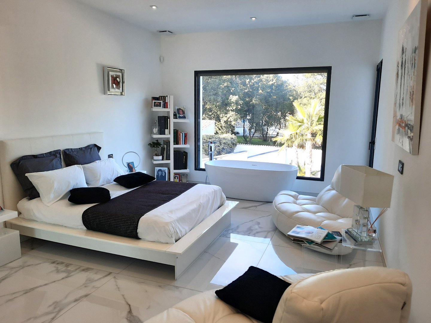 Dans une impasse de Saint-Laurent-des-Arbres, à 15 km de Villeneuve-lez-Avignon, se dresse cette maison contemporaine haut de gamme de 2021. Son architecte, en véritable chef d’orchestre, a su y jouer l’une de ses plus belles partitions. En effet, sa composition en « ut » crée un véritable duo où la maison en U répond harmonieusement à la piscine en T. Le jardin paysagé est parsemé de palmiers et d’oliviers, comme des notes raffinées, aussi bien côté cour que côté jardin. L’intérieur a pour point d’orgue l’omniprésence de la lumière, grâce à de grandes baies vitrées et une hauteur sous plafond supérieure à 3 m. La qualité des matériaux et le soin apporté aux prestations feront de vous les interprètes privilégiés de votre nouveau lieu de vie. Nous vous invitons à venir découvrir en avant-première les charmes de ce lieu d’exception. Votre contact pour ce bien : Laurent DURIER au +33 6 64 44 62 55.