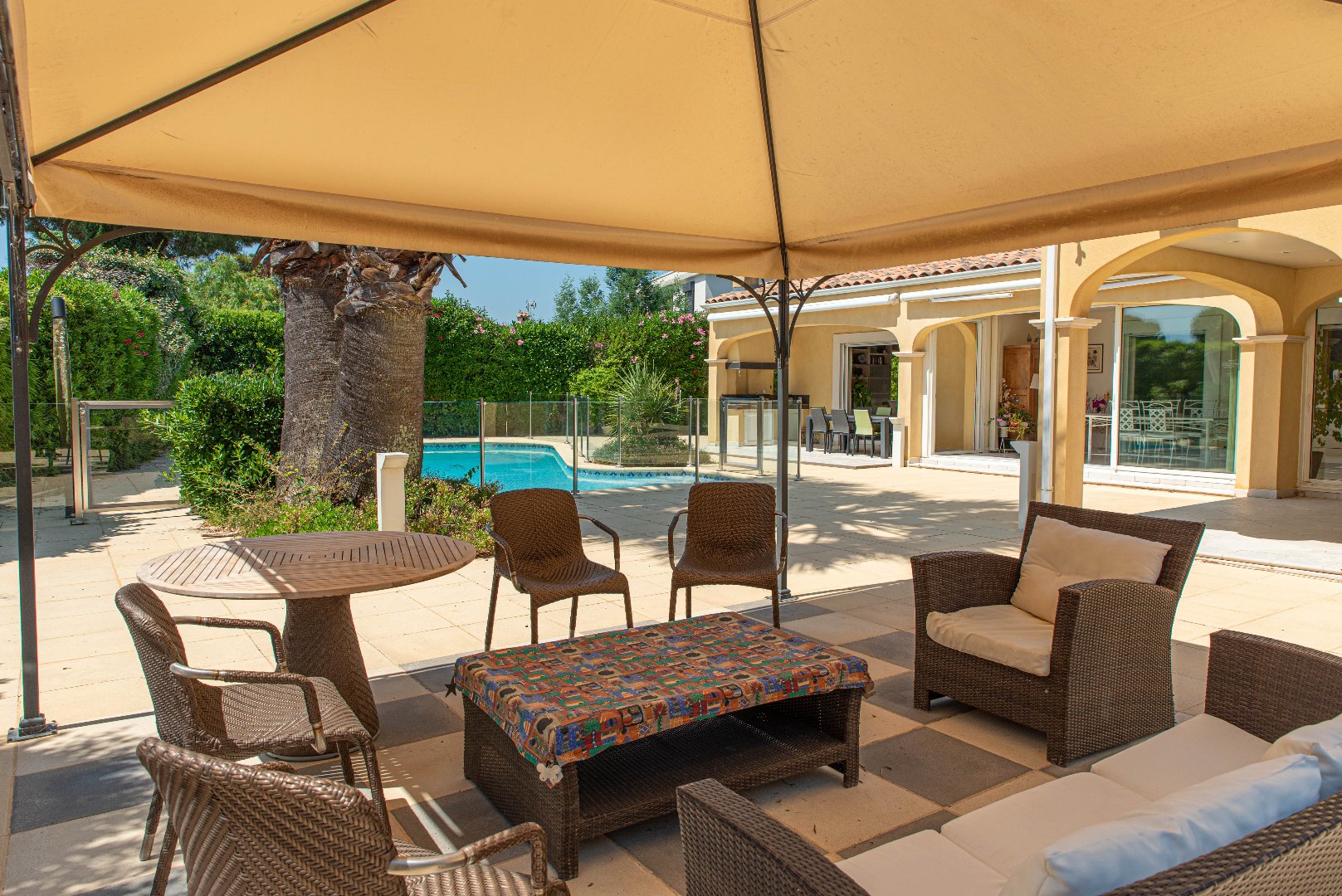 Pérols centre, à proximité immédate des plages. Située au cur de Pérols, dans un quartier résidentiel prisé, cette magnifique villa de 225 m² habitables vous séduira par ses volumes, son confort et sa situation idéale, à proximité immédiate du centre-ville (tram, commerces, écoles) et des grands axes de l’agglomération montpelliéraine (autoroute, gare TGV, aéroport, zones commerciales). De construction traditionnelle et de très belle qualité, cette villa T6 est pensée en majorité de plain-pied. Elle propose en rez-de-chaussée, un vaste salon-cathédrale de 40 m² avec mezzanine, une cuisine ouverte entièrement équipée, une salle à manger-véranda baignée de lumière, deux grandes chambres (16 m² et 25 m²), une salle de bains, des toilettes, une arrière-cuisine et une buanderie à l’étage, une mezzanine de 16 m² surplombant le séjour, une chambre supplémentaire avec sa salle de bains et ses toilettes à l’extérieur, une grande terrasse couverte invite à la convivialité en bordure d’une belle piscine traditionnelle de 11 x 5,5 m, avec plages dallées, pool-house et toilettes extérieures. Un garage spacieux de 34 m², avec mezzanine, complète ce bien. Les prestations sont les suivantes :a Chauffage au sol par pompe à chaleur, Climatisation réversible gainable en plafond, Menuiseries aluminium avec baies vitrées à galandage, Volets roulants électriques et moustiquaires, Chauffe-eau thermodynamique, Adoucisseur d’eau, Forage, Installation photovoltaïque. En parfait état général, cette villa allie modernité, qualité et sérénité, à seulement quelques minutes des plages. Une villa à visiter au plus vite. Votre contact pour ce bien : Alain Auguste 07.69.15.28.67 Agent Commercial n° 392 128 146 CCI HERAULT DEFLANDRE Résidences et Propriétés. Honoraires à la charge du vendeur. Classe énergie B, Classe climat A. Montant estimé des dépenses annuelles d’énergie pour un usage standard : entre 1250 euros et 1750 euros euros. Les informations sur les risques auxquels ce bien est exposé sont disponibles sur le site Géorisques : georisques.gouv.fr