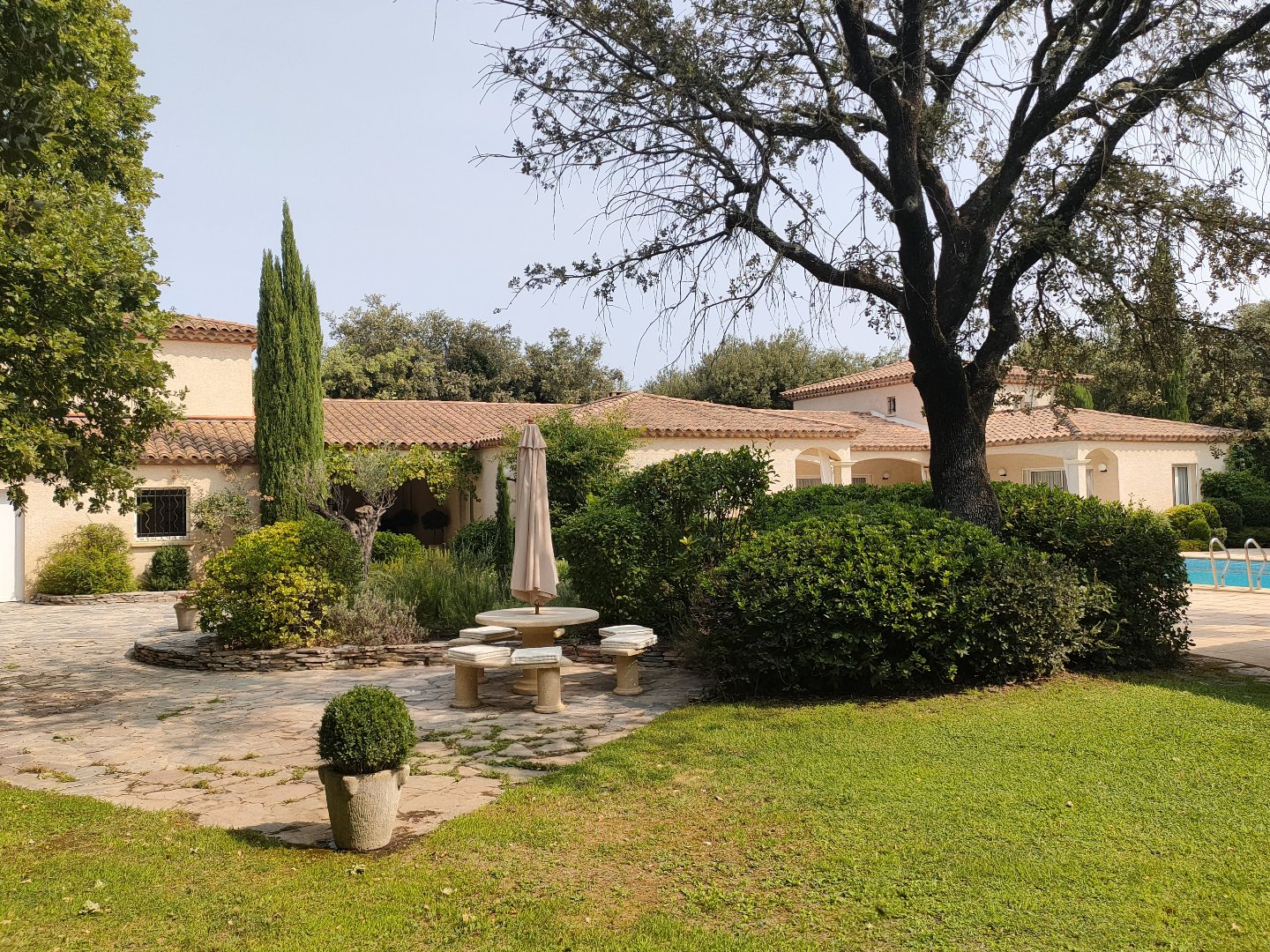 Dans ce village recherché de l’Est de Montpellier, cette authentique propriété néoprovençale est nichée au sein d’un vaste parc paysagé entièrement clos de murs privatifs. Quatre bassins et des fontaines, reliés par de petits ruisseaux, traversent avec légèreté le jardin et abritant poissons rouges et nénuphars. La propriété dispose d’une maison principale de 289 m² habitables et d’un appartement attenant qui permet de recevoir amis, familles ou personnels de maison. L’agencement et les volumes de la maison sont réfléchis comme le spacieux living de 55 m² avec ses 3 m de hauteur sous plafond. L’essentiel des pièces s’ouvrent sur le parc par de grandes baies vitrées. La lumineuse cuisine provençale, la salle à manger, le salon avec sa cheminée en pierre ainsi que le sous-sol aménagé (cave à vin, salle multimédia, salle de fitness ) offrent un cadre de vie très confortable et privilégié. Les 5 chambres, dont une suite parentale et 2 chambres de plain-pied, sont spacieuses et agrémentées de pièces d’eau. Côté jardin, la piscine dispose d’une belle dimension de 7 m x 14,5 m et de 2,4 m de profondeur sous plongeoir. Elle est en béton carrelé de mosaïque et dispose d’un volet roulant électrique intégré et est entourée de 300 m² de terrasses dallées. Son système de chauffage qualitatif permet de prolonger les bains d’été. Tout comme l’atrium, à l’abri des vents dominants, qui permet de profiter de la chaleur du soleil tout au long de l’année. Le pool house, joliment aménagé, permet l’organisation de déjeuners ou dîners, au coeur du parc, avec vue sur l’espace piscine. Une propriété de très haute qualité avec de multiples prestations : fibre, forage, divers automatismes, 40 sources d’éclairages en extérieur Un atelier, un chenil, un vaste bûcher et un double garage qui concourent à un art de vivre exceptionnel.