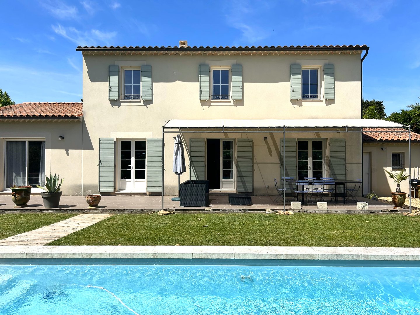 A seulement quelques minutes à pied du centre de Saint-Rémy-de-Provence, cette agréable maison orientée plein sud, de type bastide et construite en 2011 (avec un excellent classement DPE), se trouve dans un quartier résidentiel recherché, privilégié et sans nuisances. Sans vis-à-vis, vous profiterez de la quiétude de son jardin et de la fraîcheur de sa piscine avec volet ou encore de sa belle terrasse en partie ombragée. En rez-de-jardin, une pièce de vie spacieuse se prolonge par une grande cuisine toute équipée bénéficiant d’une arrière-cuisine/buanderie. Une suite de plain-pied complète ce niveau. L’étage se compose d’une chambre parentale avec salle d’eau et toilettes indépendantes, 2 chambres, une salle de bains et des toilettes. Pour profiter de Saint-Rémy, des Alpilles et vivre le meilleur de la Provence ! Votre contact pour ce bien : Adley LINQUE au +33 6 62 32 22 88.