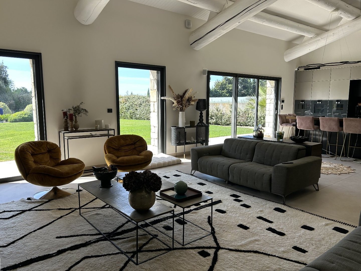 A proximité de la gare TGV, cette magnifique villa contemporaine, comblera vos rêves de Provence. Entièrement rénovée en 2021 avec des prestations haut de gamme, les propriétaires ont allié avec goût l’excellence, l’élégance, le charme et le confort moderne. Bénéficiant d’un environnement de qualité où quiétude rime avec convivialité, vous profiterez d’un jardin arboré de plus de 7 000 m², d’une piscine chauffée avec nage à contre-courant et son poolhouse entièrement équipé. Un court de tennis, un terrain de pétanque ainsi qu’un garage et un carport doté d’une borne électrique sont des atouts supplémentaires pour agrémenter les loisirs et le quotidien. La villa, d’environ 250 m², offre de grands espaces lumineux, notamment une immense pièce de vie « cathédrale » avec cheminée au gaz de ville. Deux suites de plain-pied dont une parentale avec dressing sont disposées de part et d’autre pour plus d’intimité. A l’étage, deux autres suites et un espace bureau pour une vie de famille harmonieuse ou recevoir agréablement les amis. Un bien d’exception optimisé et simplifié par la domotique pour vivre avec légèreté ! Il ne vous reste plus qu’à y écrire votre propre histoire… Votre contact pour ce bien : Adley LINQUE au +33 6 62 32 22 88.